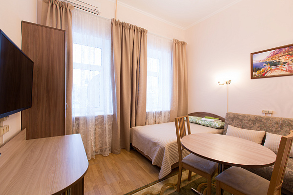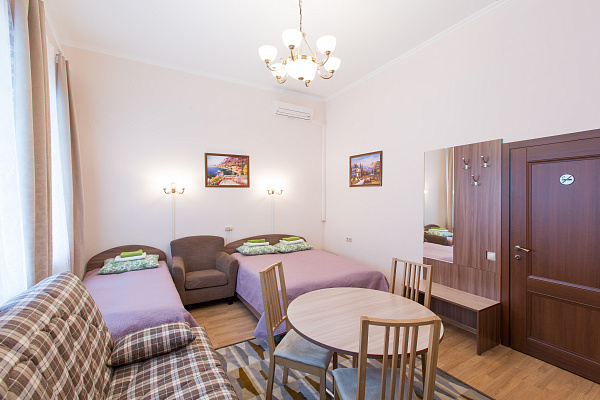 Небольшой, но очень уютный мини-отель «Город» приглашает в гости. Мы находимся буквально через дорогу от станции метро Новослободская. Несмотря на то, что мини-отель эконом-класса, чистота и комфорт являются нашим первым приоритетом. Все санузлы и душевые раздельные, проводится ежедневная уборка. В каждом номере кондиционер, телевизор, холодильник, чайник и бесплатный Wi-Fi. К вашим услугам полностью оборудованная кухня со всей необходимой посудой, СВЧ печкой, чайником. Мы порадуем вас приятно низкой ценой и очень удобным расположением. Неподалёку находятся центр нейрохирургии им. Бурденко, театр кукол Образцова и много других достопримечательностей столицы. За длительное проживание, а также постоянным клиентам предусмотрены скидки. Всегда будем рады вас принять.