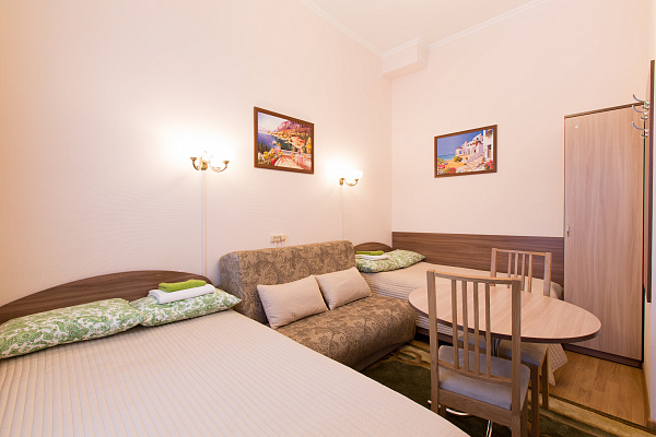 Небольшой, но очень уютный мини-отель «Город» приглашает в гости. Мы находимся буквально через дорогу от станции метро Новослободская. Несмотря на то, что мини-отель эконом-класса, чистота и комфорт являются нашим первым приоритетом. Все санузлы и душевые раздельные, проводится ежедневная уборка. В каждом номере кондиционер, телевизор, холодильник, чайник и бесплатный Wi-Fi. К вашим услугам полностью оборудованная кухня со всей необходимой посудой, СВЧ печкой, чайником. Мы порадуем вас приятно низкой ценой и очень удобным расположением. Неподалёку находятся центр нейрохирургии им. Бурденко, театр кукол Образцова и много других достопримечательностей столицы. За длительное проживание, а также постоянным клиентам предусмотрены скидки. Всегда будем рады вас принять.